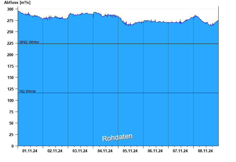 - Mittlerer Niedrigwasserabfluss MNQ 224 m³/s