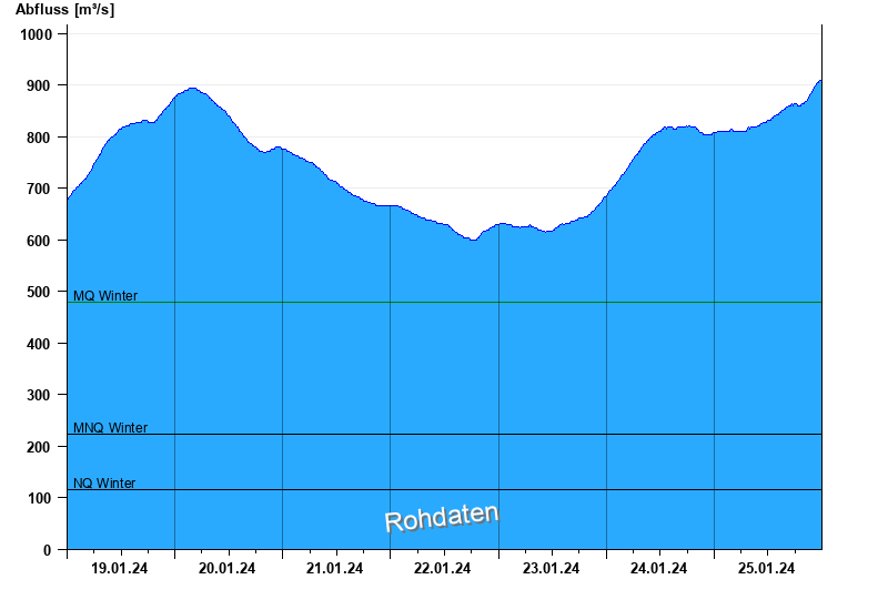 - Mittlerer Niedrigwasserabfluss MNQ 224 m³/s