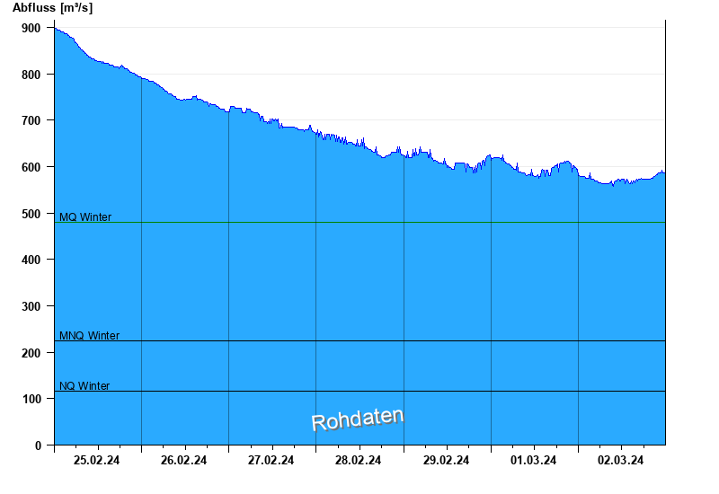 - Mittlerer Niedrigwasserabfluss MNQ 224 m³/s