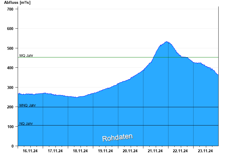 - Mittlerer Niedrigwasserabfluss MNQ 198 m³/s