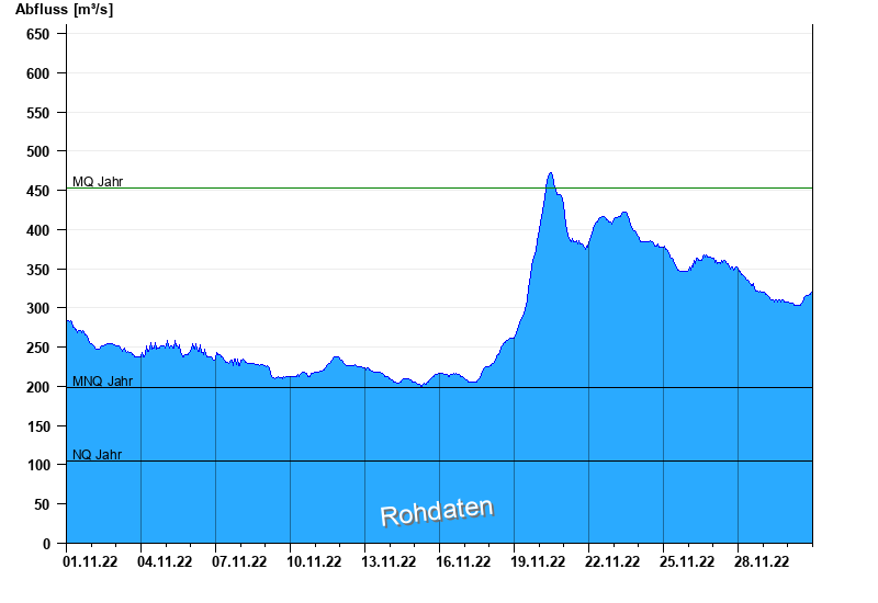 - Mittlerer Niedrigwasserabfluss MNQ 198 m³/s