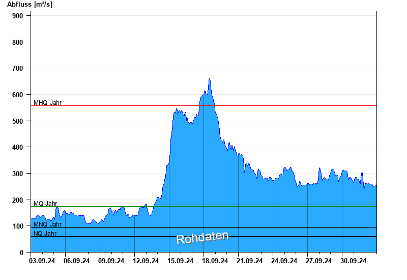 - Mittlerer Hochwasserabfluss MHQ 558 m³/s