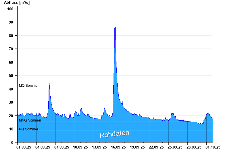 - Mittlerer Niedrigwasserabfluss MNQ 15,2 m³/s
