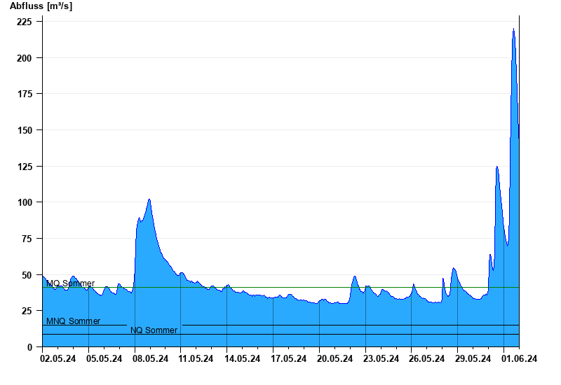 - Mittlerer Niedrigwasserabfluss MNQ 15,2 m³/s