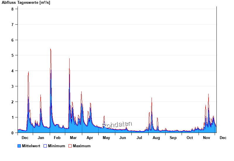 | Date | Mean value [m³/s] | Maximum [m³/s] | Minimum [m³/s] |
