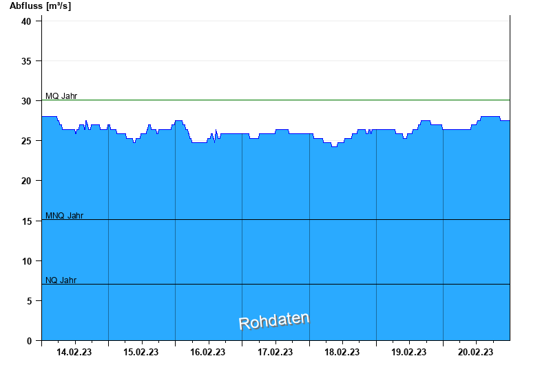 - Mittlerer Niedrigwasserabfluss MNQ 15,1 m³/s