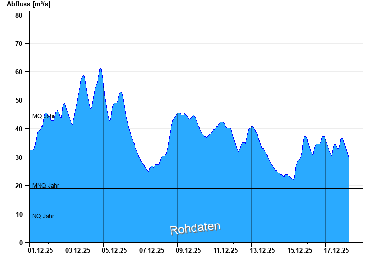 - Mittlerer Niedrigwasserabfluss MNQ 19 m³/s