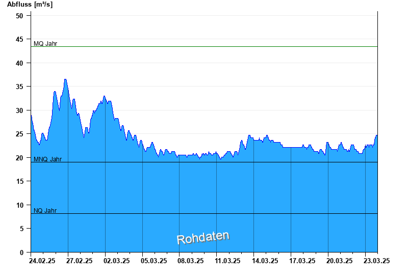 - Mittlerer Niedrigwasserabfluss MNQ 19 m³/s