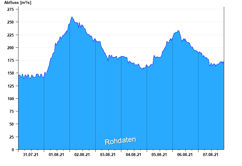 Pegel durch außerordentlichen Kraftwerksbetrieb beeinflusst.
