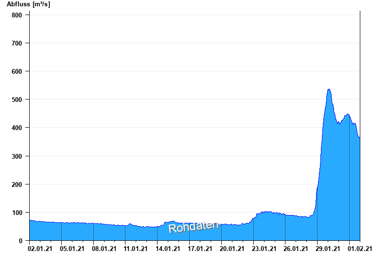 Pegel durch außerordentlichen Kraftwerksbetrieb beeinflusst.