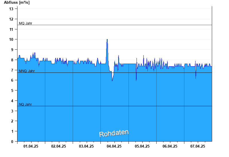 - Mittlerer Niedrigwasserabfluss MNQ 6,73 m³/s