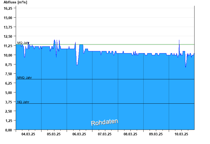 - Mittlerer Niedrigwasserabfluss MNQ 6,73 m³/s