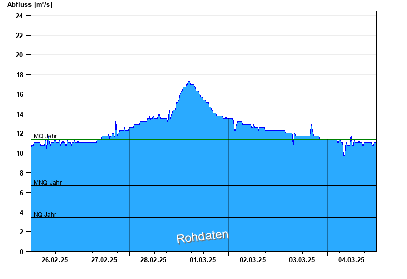 - Mittlerer Niedrigwasserabfluss MNQ 6,73 m³/s