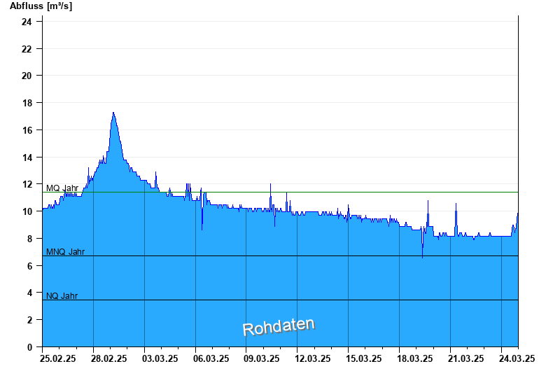- Mittlerer Niedrigwasserabfluss MNQ 6,73 m³/s