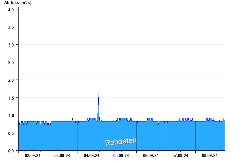 Abfluss durch starke Verkrautung behindert; Abflusswerte unsicher