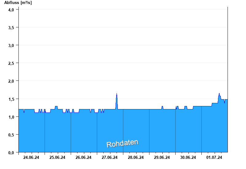 Abfluss durch starke Verkrautung behindert; Abflusswerte unsicher