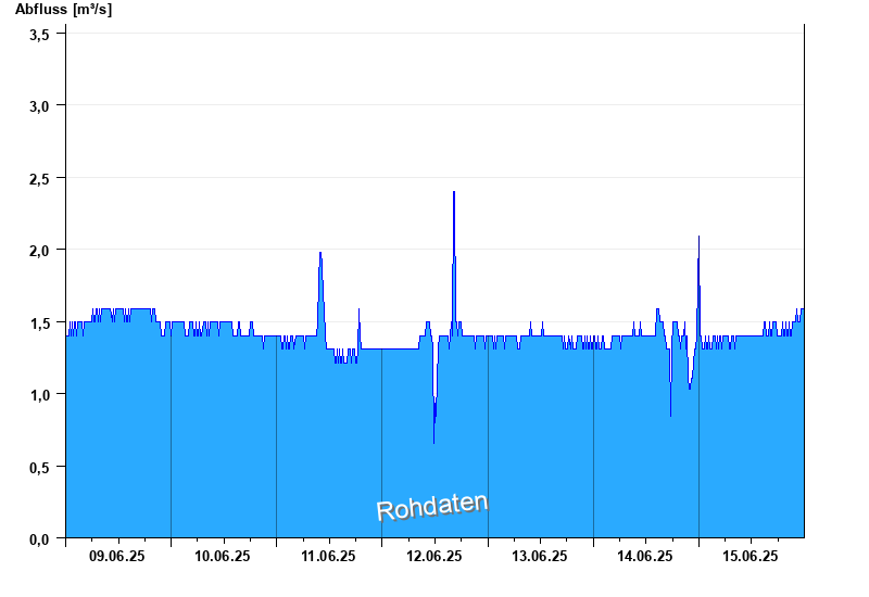 Abfluss durch starke Verkrautung behindert; Abflusswerte unsicher