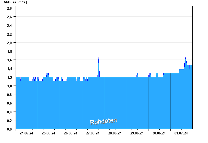 Abfluss durch starke Verkrautung behindert; Abflusswerte unsicher