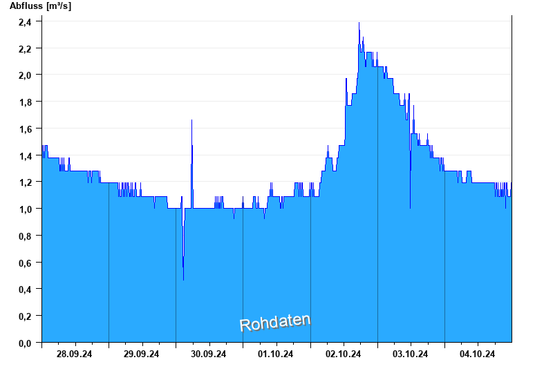 Abfluss durch starke Verkrautung behindert; Abflusswerte unsicher