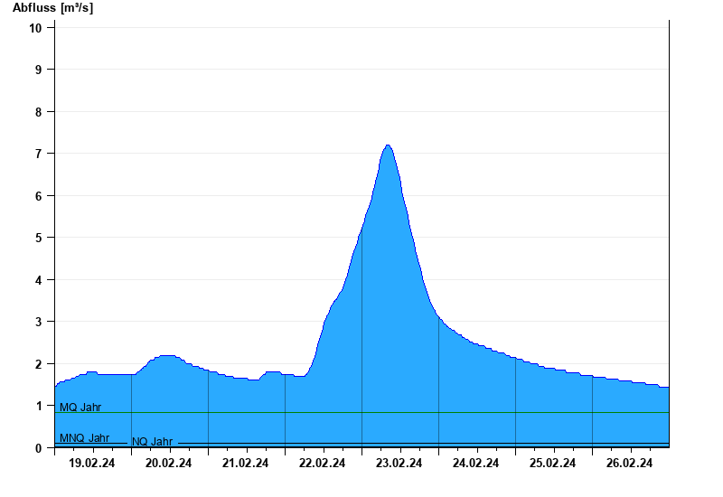 - Mittlerer Niedrigwasserabfluss MNQ 0,099 m³/s
