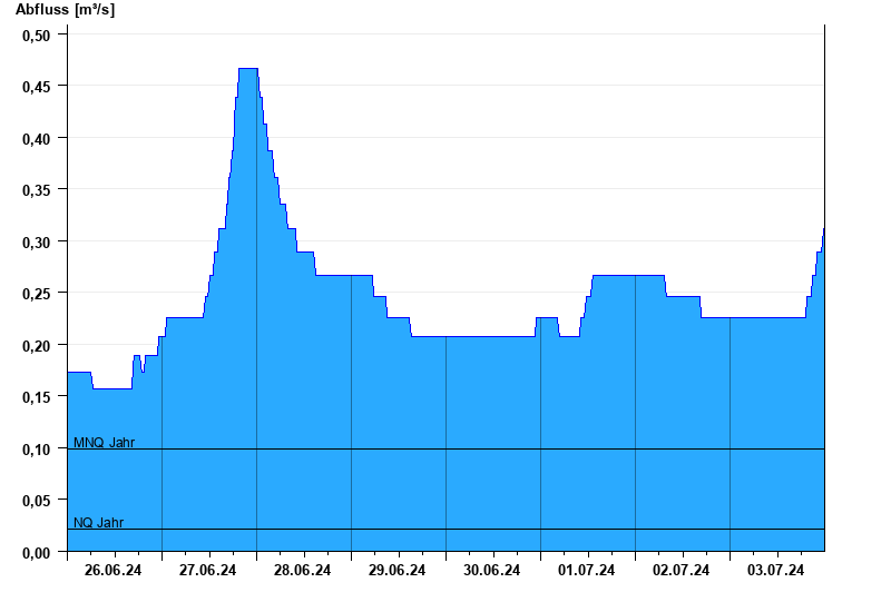 - Mittlerer Niedrigwasserabfluss MNQ 0,099 m³/s