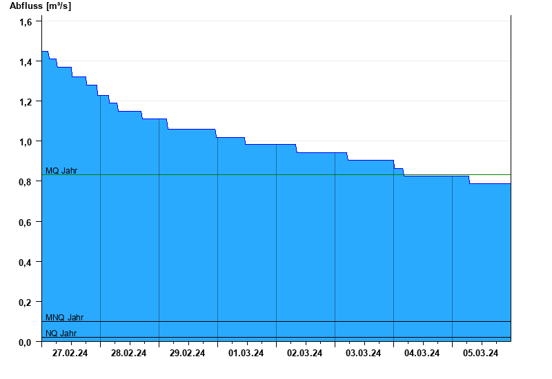 - Mittlerer Niedrigwasserabfluss MNQ 0,099 m³/s