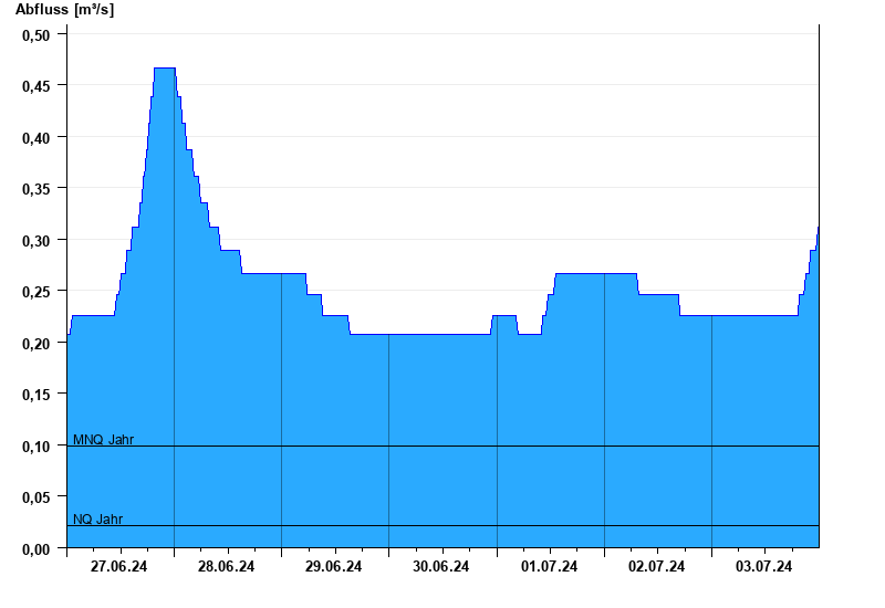 - Mittlerer Niedrigwasserabfluss MNQ 0,099 m³/s