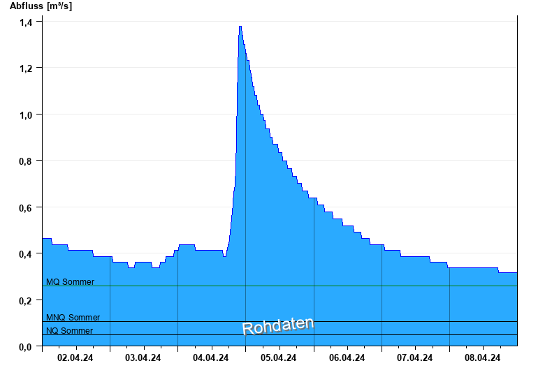 - Mittlerer Niedrigwasserabfluss MNQ 0,105 m³/s