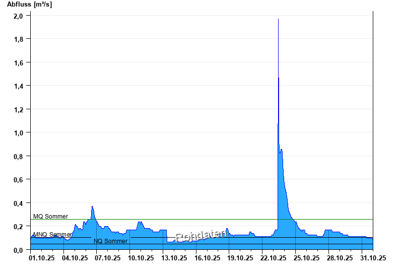 - Mittlerer Niedrigwasserabfluss MNQ 0,105 m³/s