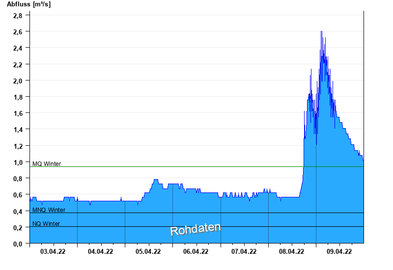 - Mittlerer Niedrigwasserabfluss MNQ 0,376 m³/s