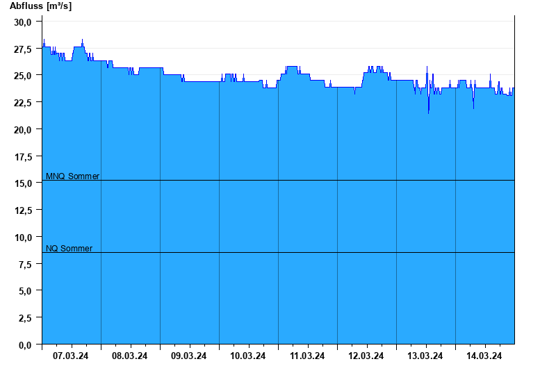 - Mittlerer Niedrigwasserabfluss MNQ 15,2 m³/s