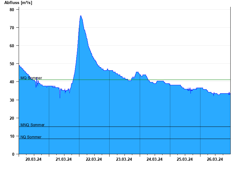 - Mittlerer Niedrigwasserabfluss MNQ 15,2 m³/s