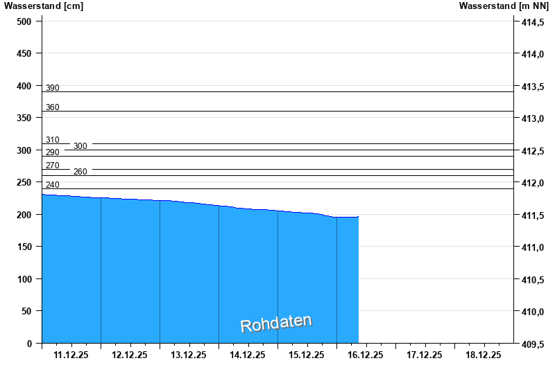 - 270 cm: Straße Fischhaus - Meinheim: Beginn der Überflutung