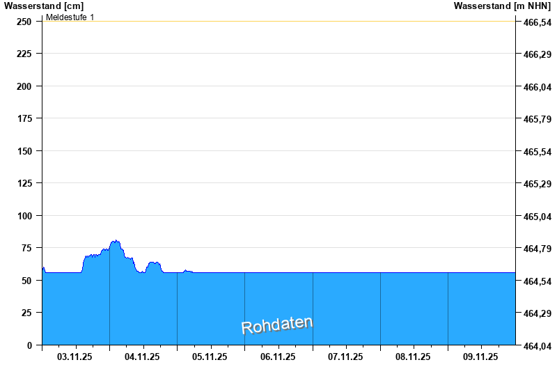 Der Pegel ist in der Ausleitungsstrecke (Mutterbett). Insbesondere bei Niedrig- und Mittelwasser fließt Wasser im Fabrikkanal und es wird nicht der Gesamtabfluss der Wertach gemessen.