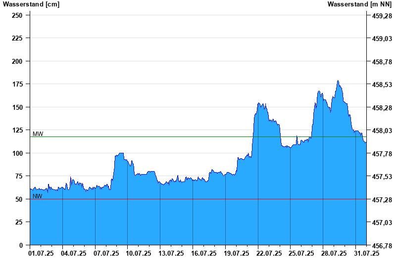 Abflussermittlung bei Hochwasser durch Geschiebeverlagerung beeinflusst