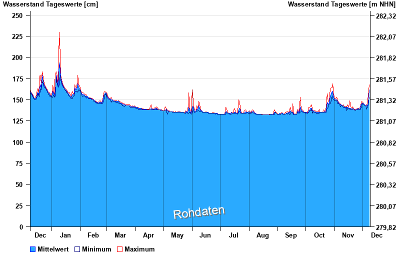 | Date | Mean value [cm] | Maximum [cm] | Minimum [cm] |