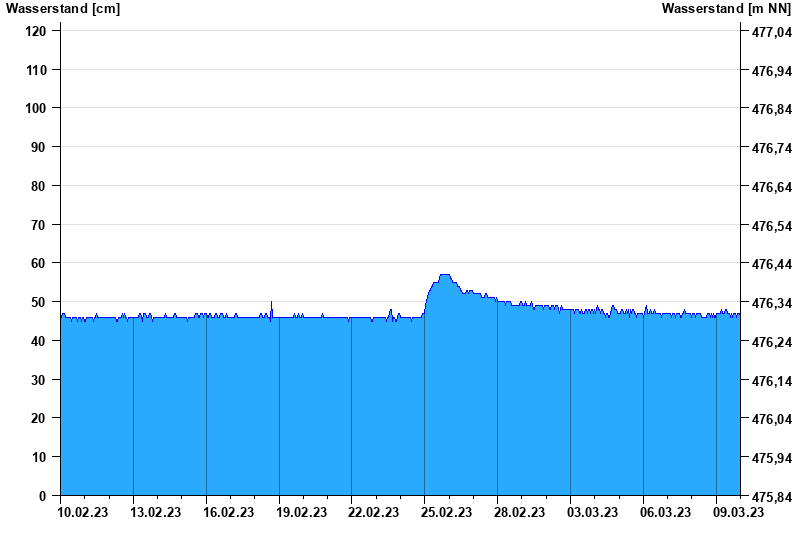 Waterlevel from 10.02.2023 to 09.03.2023| Date | Waterlevel [cm] |