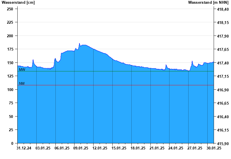 Der Pegelstand wird nicht stündlich aktualisiert (4 x am Tag).
