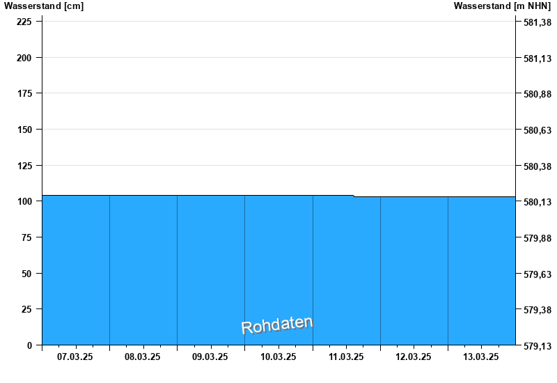 Der Pegel wird durch Baumaßnahmen unterhalb beeinflusst (Rückstau). Entsprechend sind die Abflusswerte nicht korrekt