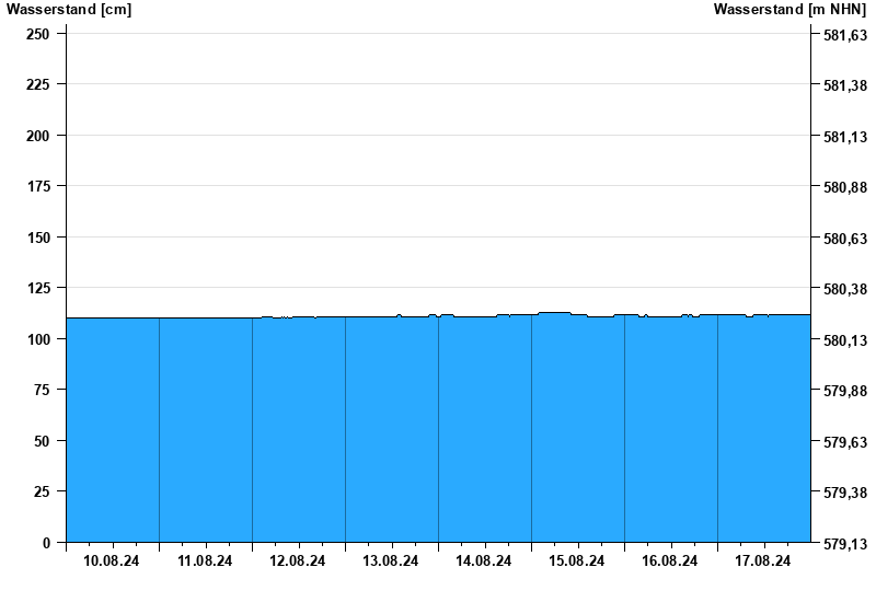 Der Pegel wird durch Baumaßnahmen unterhalb beeinflusst (Rückstau). Entsprechend sind die Abflusswerte nicht korrekt