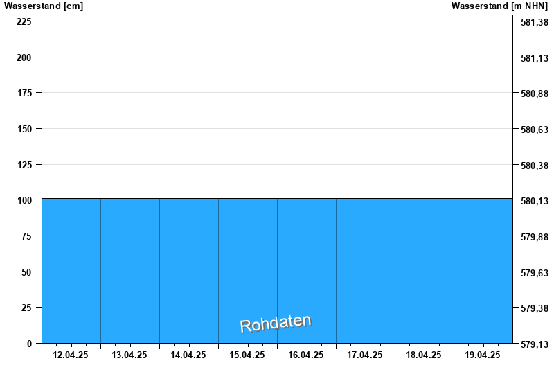 Der Pegel wird durch Baumaßnahmen unterhalb beeinflusst (Rückstau). Entsprechend sind die Abflusswerte nicht korrekt
