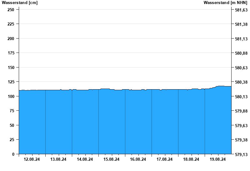 Der Pegel wird durch Baumaßnahmen unterhalb beeinflusst (Rückstau). Entsprechend sind die Abflusswerte nicht korrekt