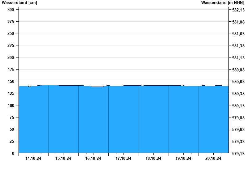 Der Pegel wird durch Baumaßnahmen unterhalb beeinflusst (Rückstau). Entsprechend sind die Abflusswerte nicht korrekt