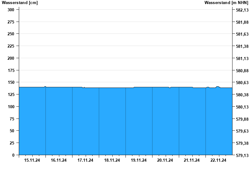 Der Pegel wird durch Baumaßnahmen unterhalb beeinflusst (Rückstau). Entsprechend sind die Abflusswerte nicht korrekt