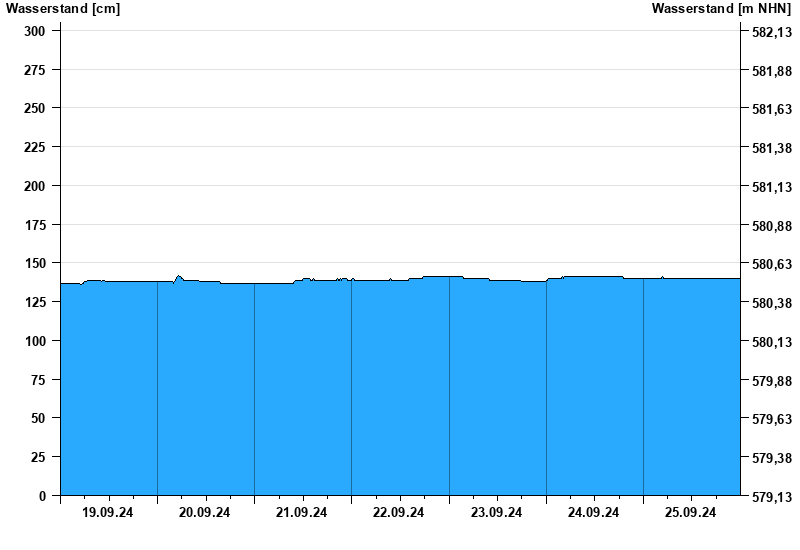 Der Pegel wird durch Baumaßnahmen unterhalb beeinflusst (Rückstau). Entsprechend sind die Abflusswerte nicht korrekt