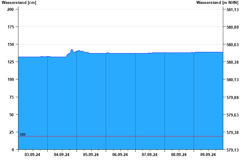 Der Pegel wird durch Baumaßnahmen unterhalb beeinflusst (Rückstau). Entsprechend sind die Abflusswerte nicht korrekt