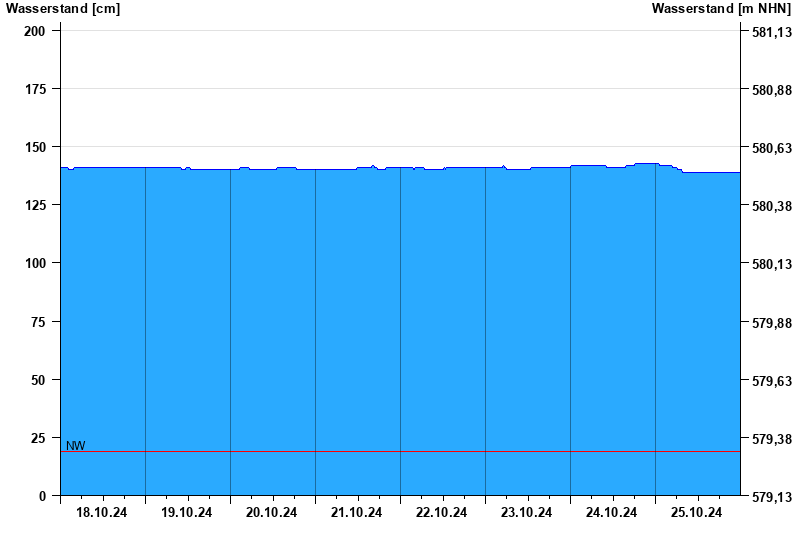 Der Pegel wird durch Baumaßnahmen unterhalb beeinflusst (Rückstau). Entsprechend sind die Abflusswerte nicht korrekt