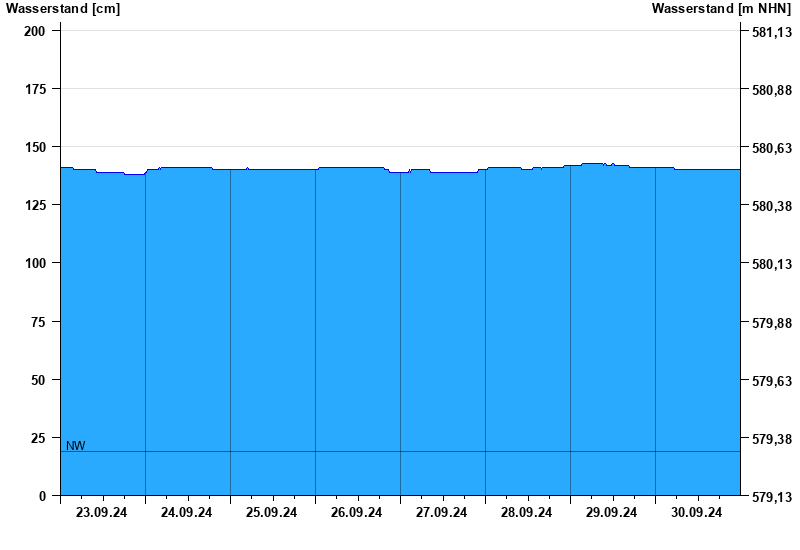 Der Pegel wird durch Baumaßnahmen unterhalb beeinflusst (Rückstau). Entsprechend sind die Abflusswerte nicht korrekt