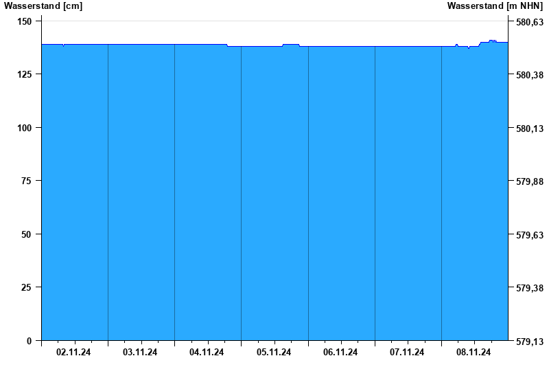 Der Pegel wird durch Baumaßnahmen unterhalb beeinflusst (Rückstau). Entsprechend sind die Abflusswerte nicht korrekt
