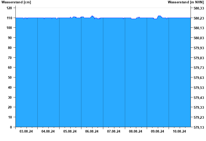 Der Pegel wird durch Baumaßnahmen unterhalb beeinflusst (Rückstau). Entsprechend sind die Abflusswerte nicht korrekt
